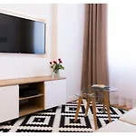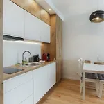 Central Apartments Rajska comprende un salottino, completo di un divano e uno scrittoio, oltre a comfort moderni come una TV a schermo piatto con canali satellitari. I servizi di sicurezza in camera includono rilevatori di fumo e una chiave elettronica. Una cabina doccia e un bagno alla francese sono a disposizione degli ospiti. Inoltre, ci sono asciugacapelli e asciugamani.
